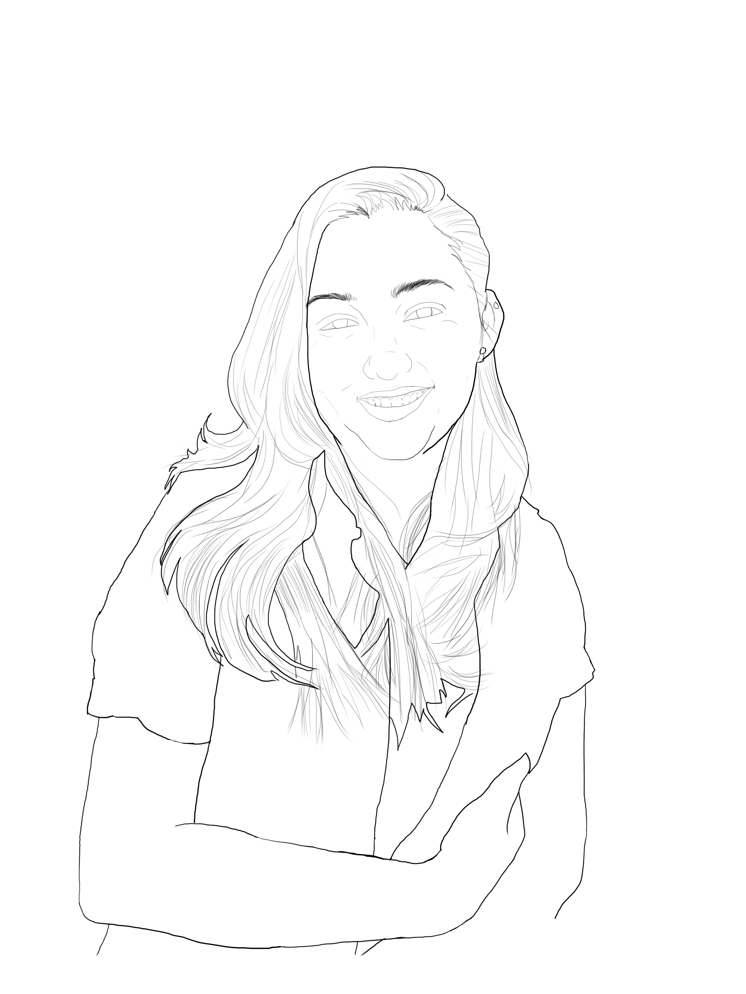 As you can see, by redrawing the area she looks a little more balanced. What you’re creating involves a process and sometimes it will evolve in ways you didn’t expect. Be open to correcting flaws and reverse and flip your image sometimes. It’ll help you correct issues and notice errors. Like leaving out the linework for her blouse! Oops!