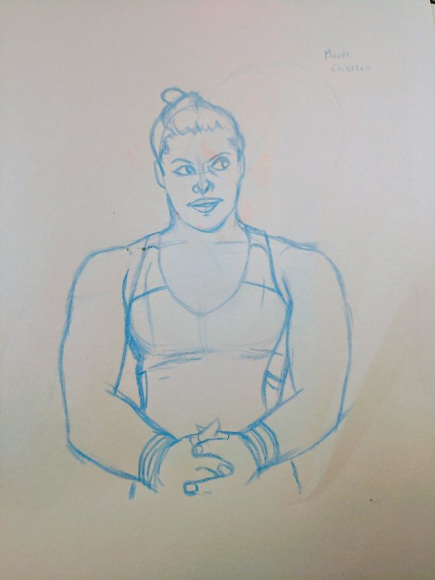 But enough of that. I’m doing another female bodybuilder, yay! I get asked if that’s all I draw or is it a fetish or something. The answer is no. But I have been a powerlifter since I was 16. So I have traveled in the same circles.
