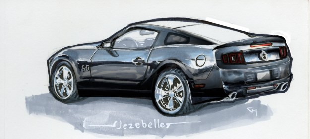 No driver is ever the same without their awesome ride! Unfortunately, I forgot to save this image until I had already started line work! I HATE doing that part; I have nerve damage to my hands and it involves a lot of smooth flowing lines. Still, it has to be done and all the erasing is worth it in the end. As you can see, I’m grouping each aspect of the image individually. That way any changes I need to make to individual sections can be accomplished without changing the whole. Smart, huh?