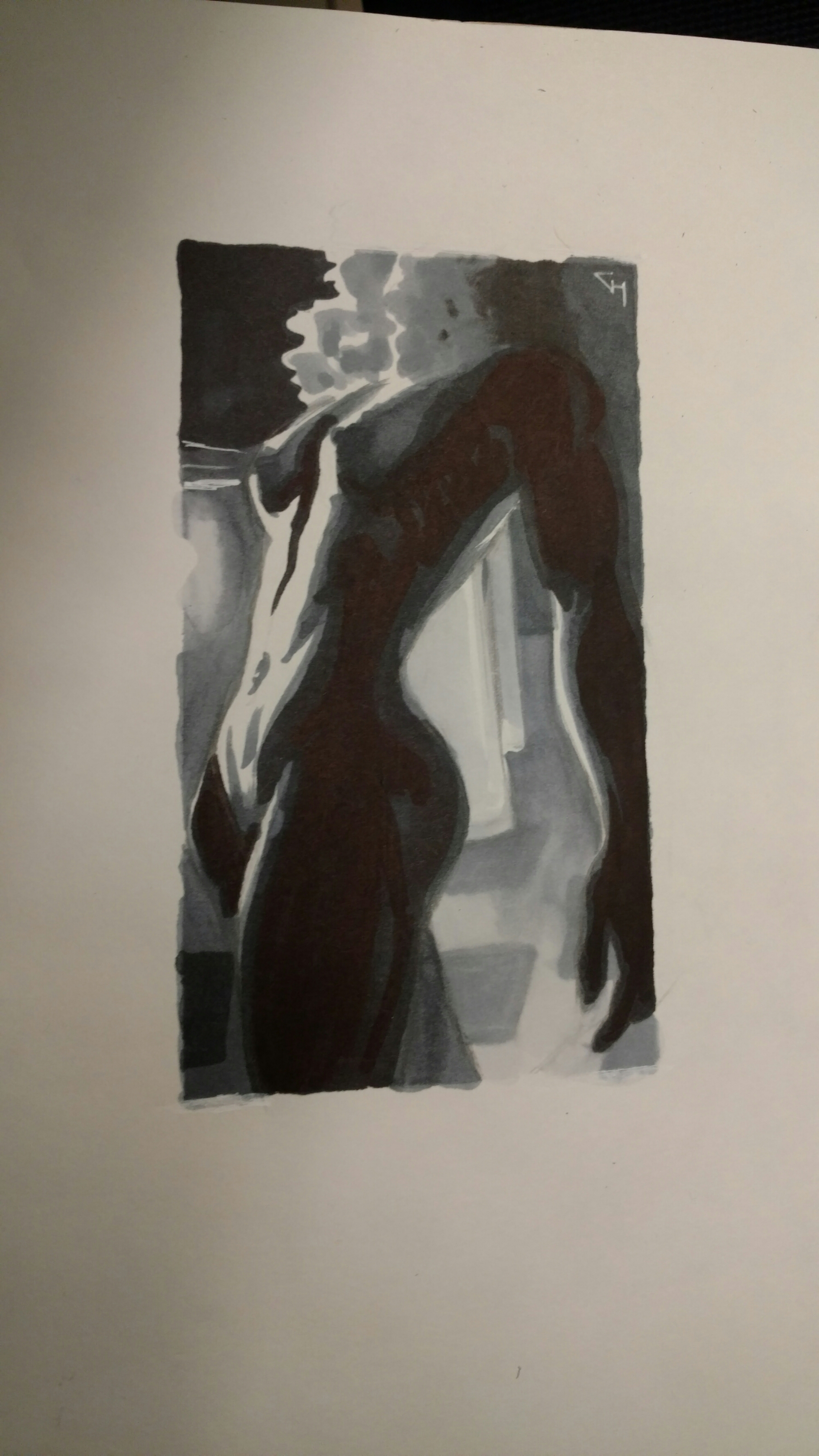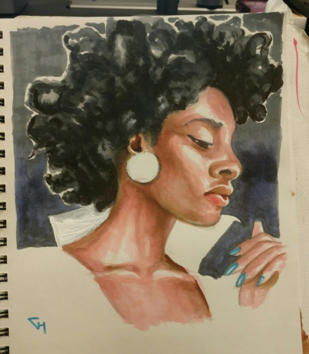 In the meantime, I had to fight an old enemy; smudging. While your strokes are fresh the oil from your hands can continue to smear them, usually leaving your image looking blurry. A piece of paper or cloth under hand fixes the issue. Also, Pro tip: learn how to shade by gradually lifting pressure on your stroke. Unless you’re using charcoal, the ability to shade without smudging is going to improve everything about your image.