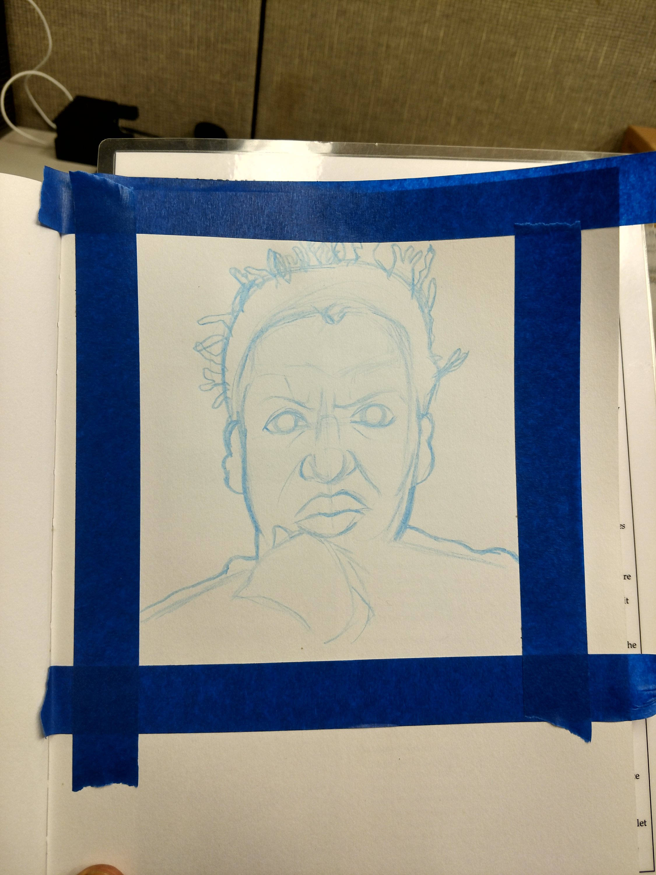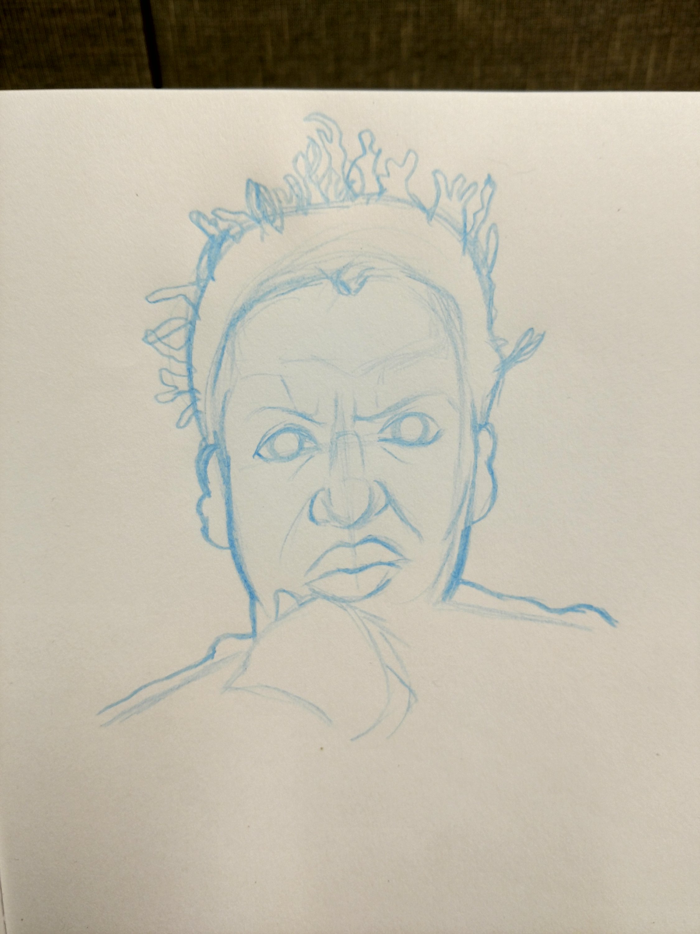 In the meantime, I had to fight an old enemy; smudging. While your strokes are fresh the oil from your hands can continue to smear them, usually leaving your image looking blurry. A piece of paper or cloth under hand fixes the issue. Also, Pro tip: learn how to shade by gradually lifting pressure on your stroke. Unless you’re using charcoal, the ability to shade without smudging is going to improve everything about your image.