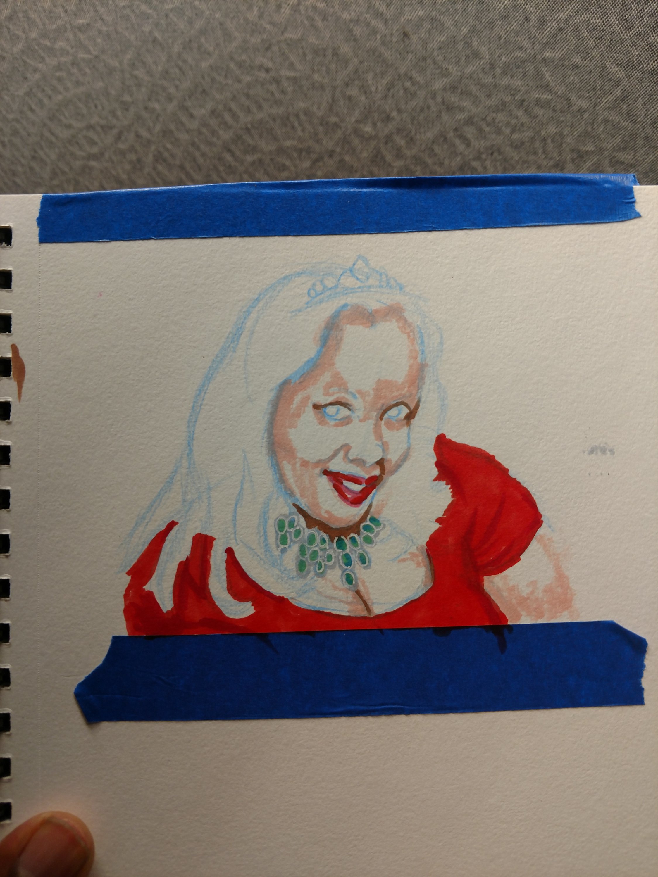 Next came the color markers. I was going to do flats of colour, but forgot and started getting overly elaborate. Oops!