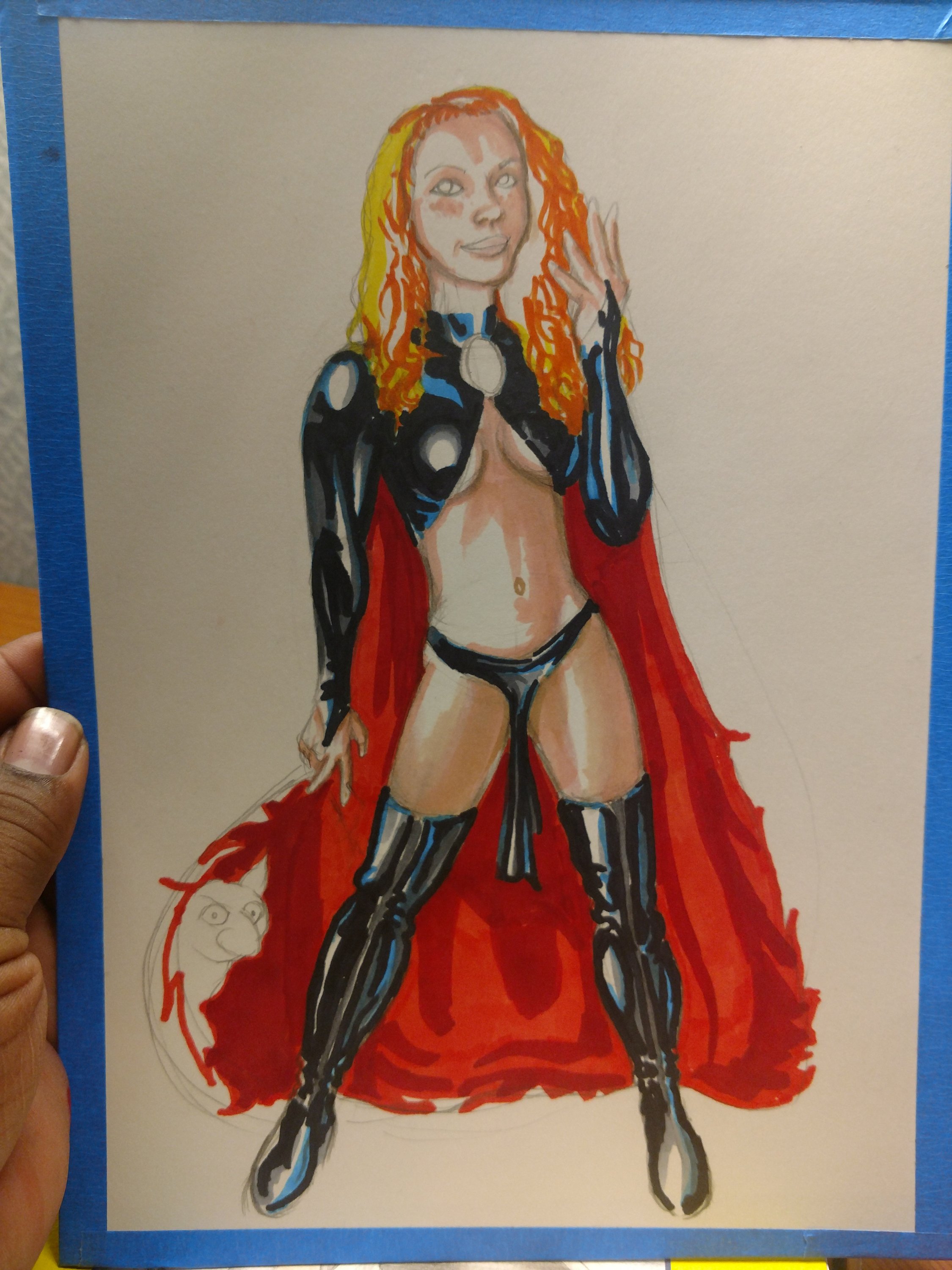 So, it’s never come up but I have a couple of wily and fun ginger sisters in my life. I’ve drawn them before as Jean Grey and Dark Phoenix; it seemed appropriate, given the personalities involved. But one of them REALLY loves Halloween. So… I made her the Goblin Queen!