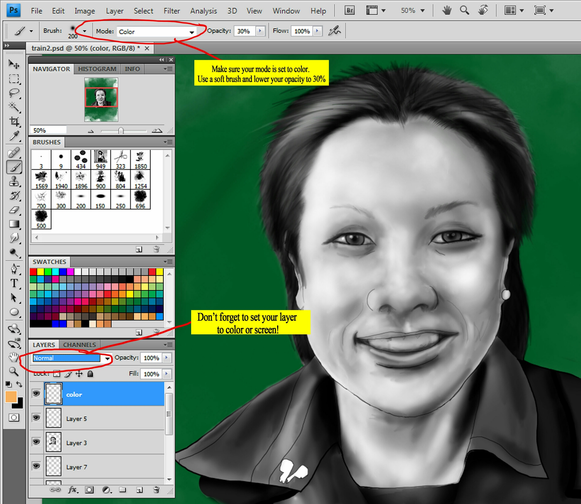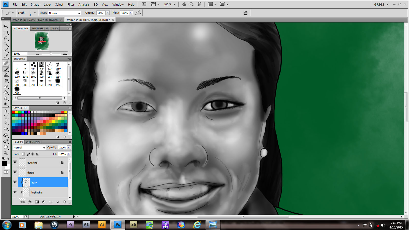It doesn’t matter though, cause I’m doing it anyway! I begin by drawing my subject from a very bad phone shot. No, I won’t show it; I’m a videographer my rep would suffer! Besides, this is really just a sketch. Once it’s done I began by changing the color and opacity. I create a separate layer for all the line work needed. Always make sure you’re using hard edges at this stage.