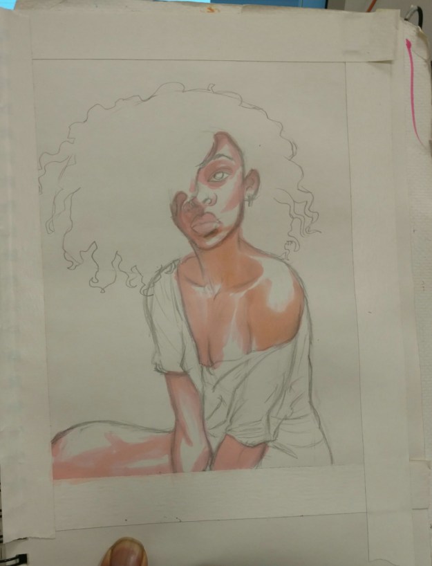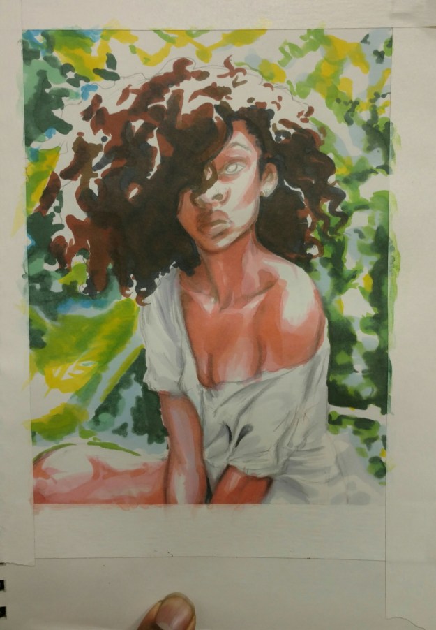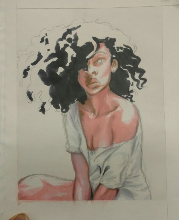 Lately, I’ve been doing more traditionally rendered drawings; not necessarily an active choice but one I’m enjoying immensely. Usually my ladies are pretty buff and athletic.