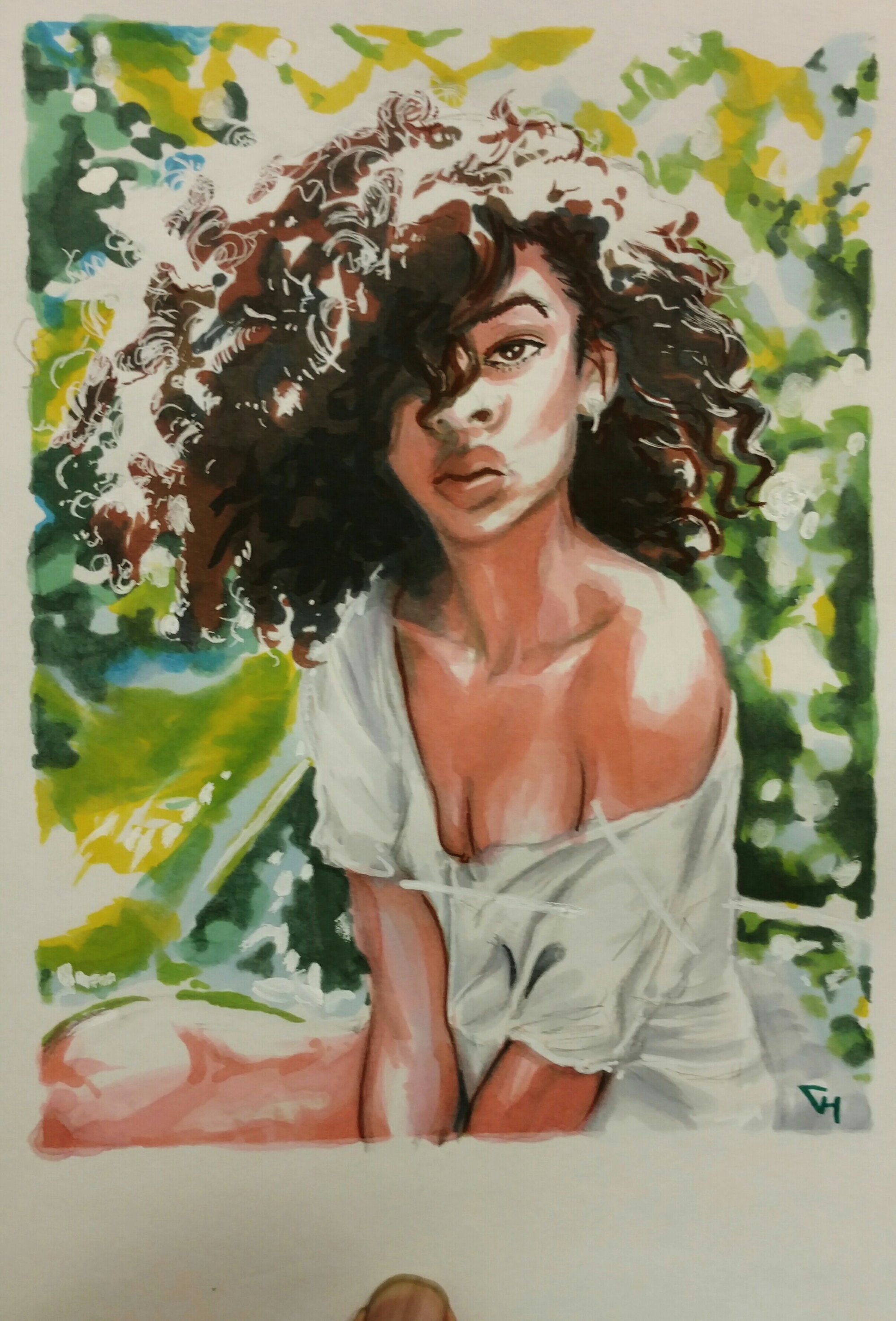Lately, I’ve been doing more traditionally rendered drawings; not necessarily an active choice but one I’m enjoying immensely. Usually my ladies are pretty buff and athletic.