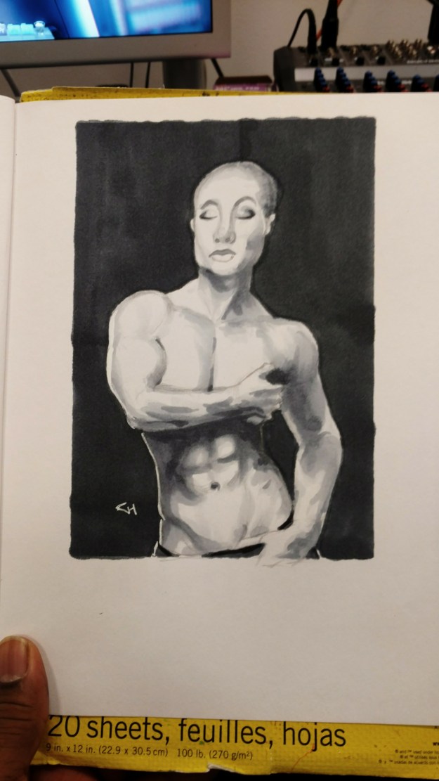 The other is that I was trying out a new sketchpad. However, I forgot an important factor; paperweight. It absorbs ink, but only to a limit, so it was resistant to my usual technique. Ugh!!