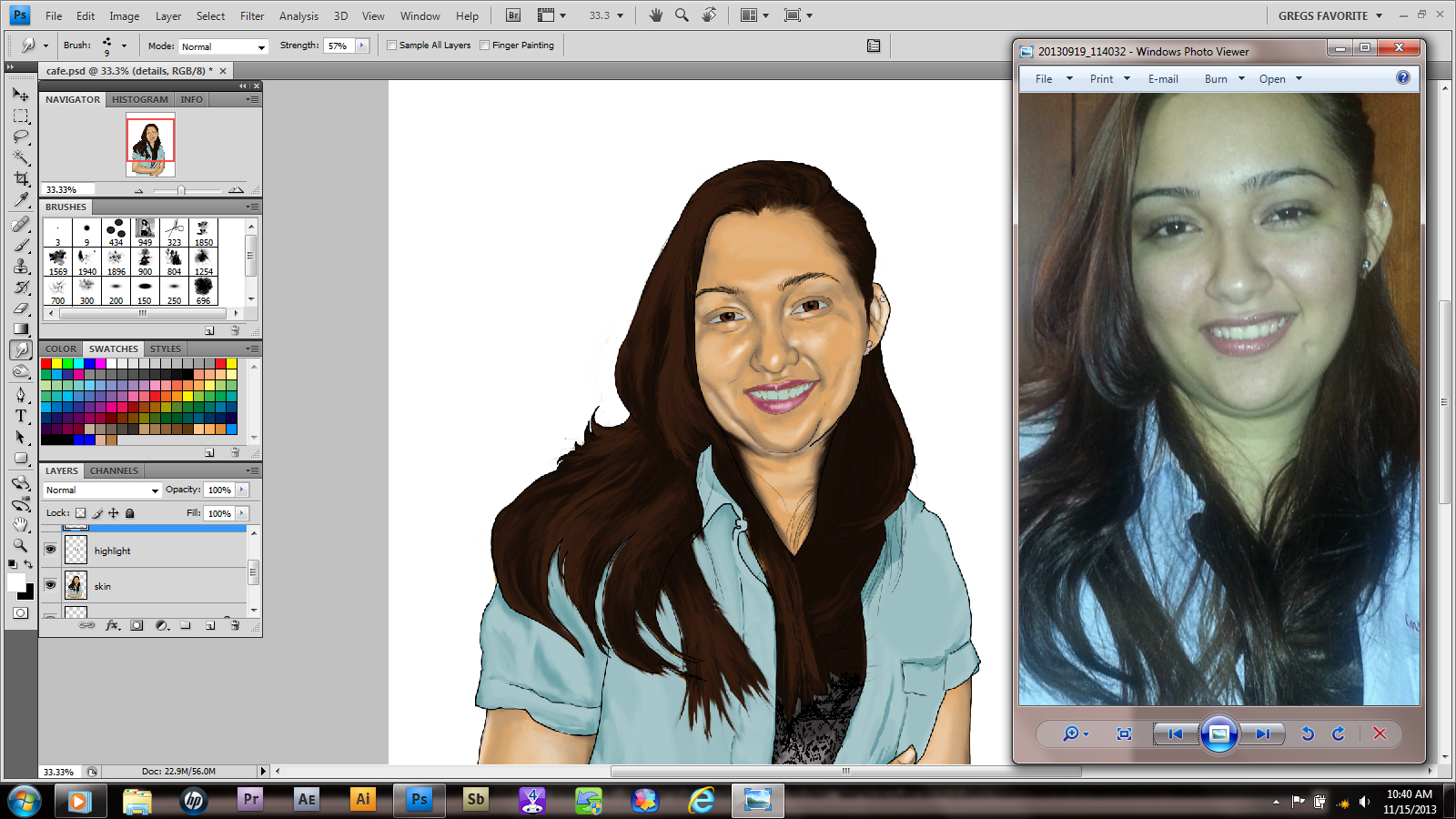 Next, I began to add facial highlights. I’m going to be honest; If this picture were going for more realism, I wouldn’t use these at ALL. I mean, there’s no truly white areas on your body, right? (sorry vampires)