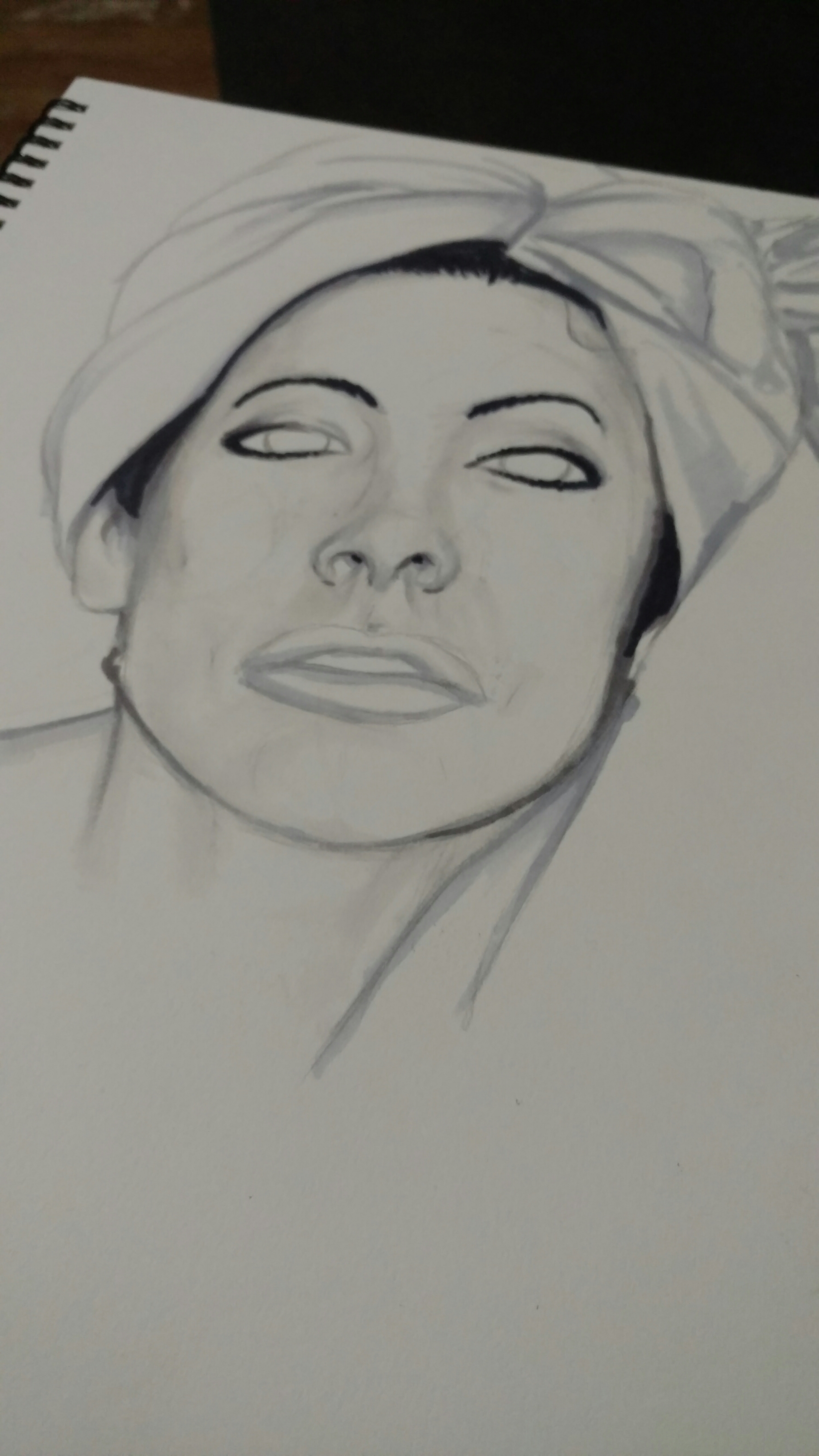 I did it as fast as I could. I just drew her like she was in the shower, except the water is mine. My tears. And NO ONE would know that. Unless I told them.