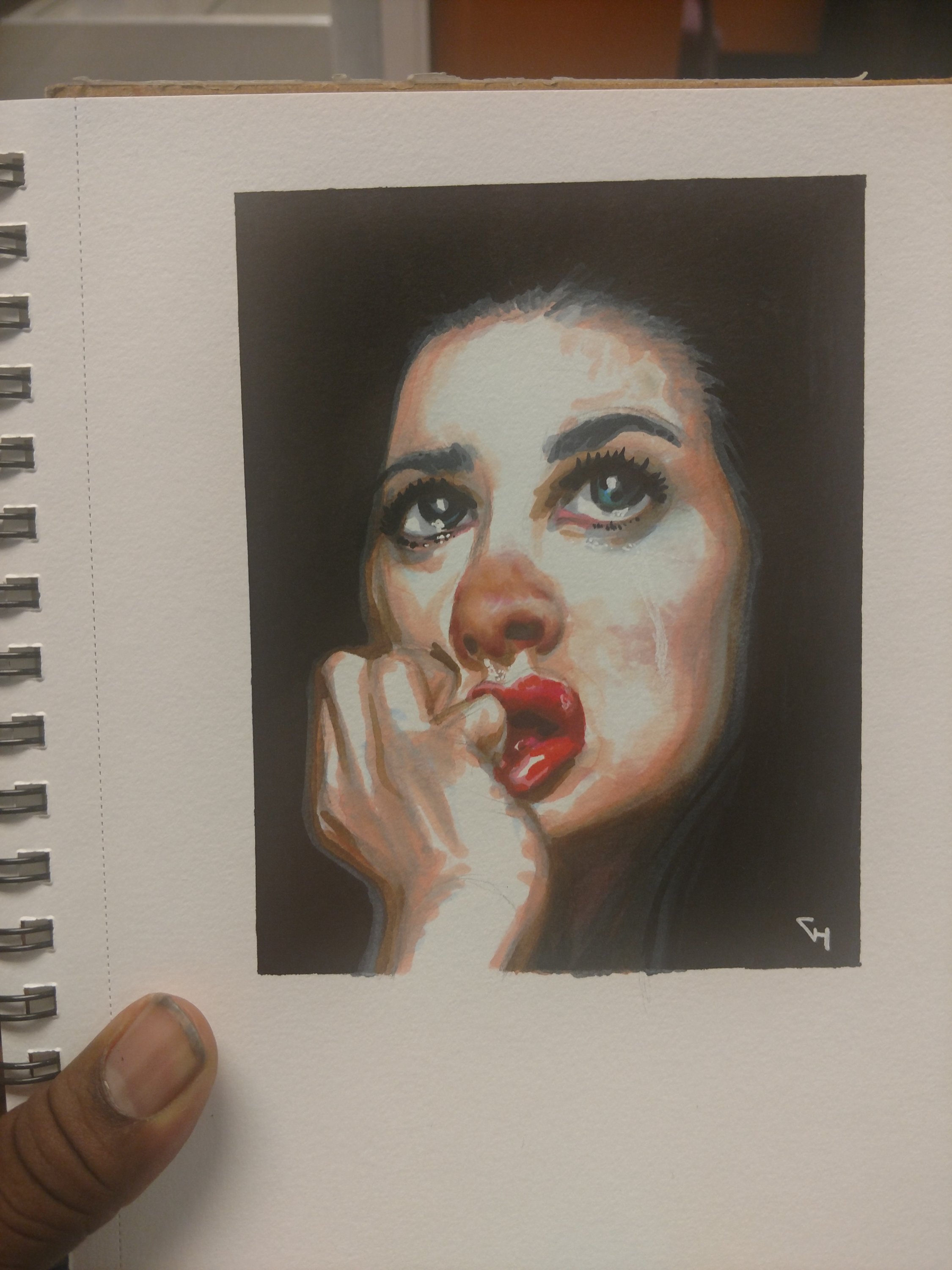 My goal with this was to make her “pretty ugly”; that is take a beautiful person and show them in an unflattering light. She’s crying and her nose is red and slightly runny. I hope you guys like it!